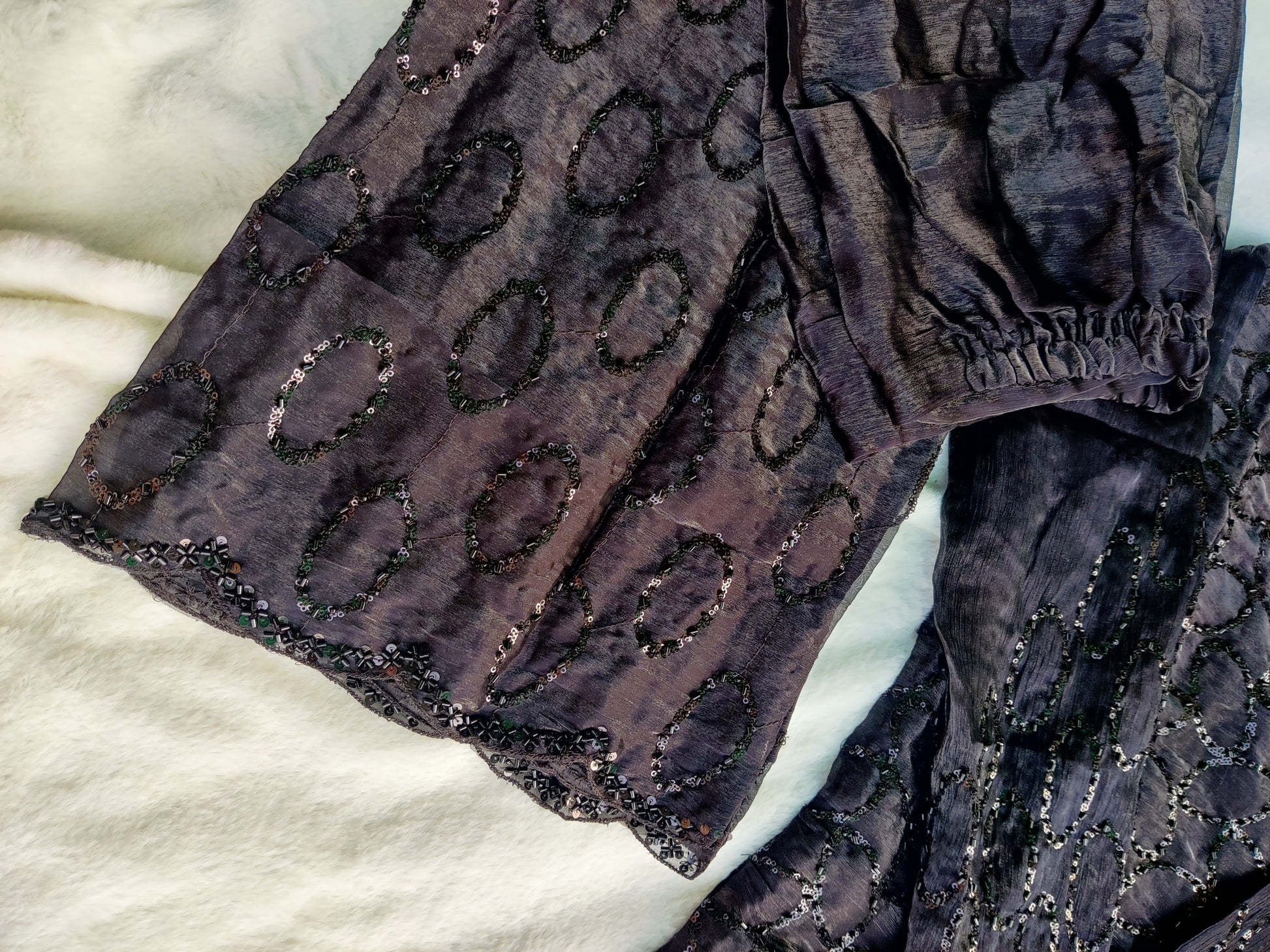 - Pant Style: Wide-leg pants with matching handwork