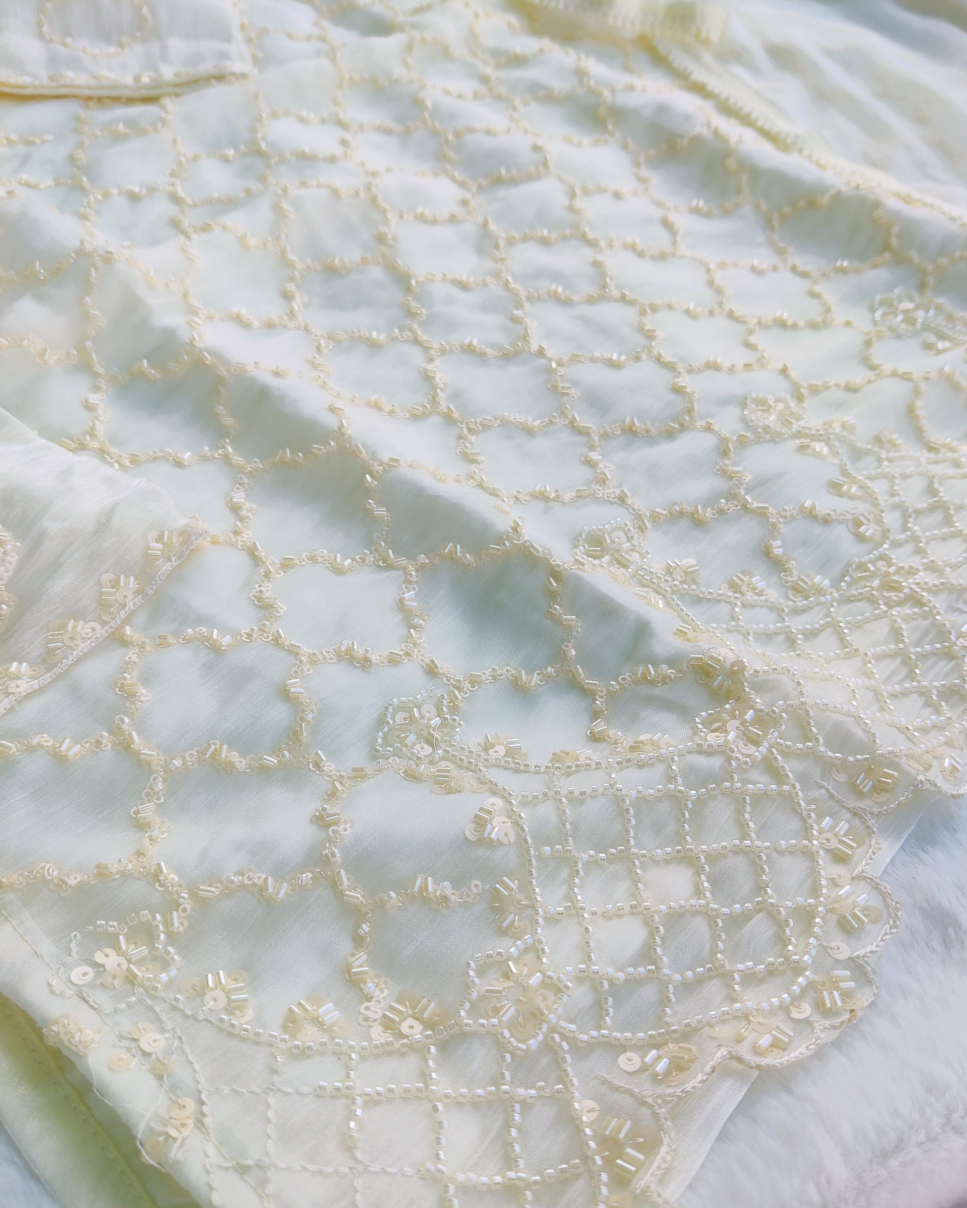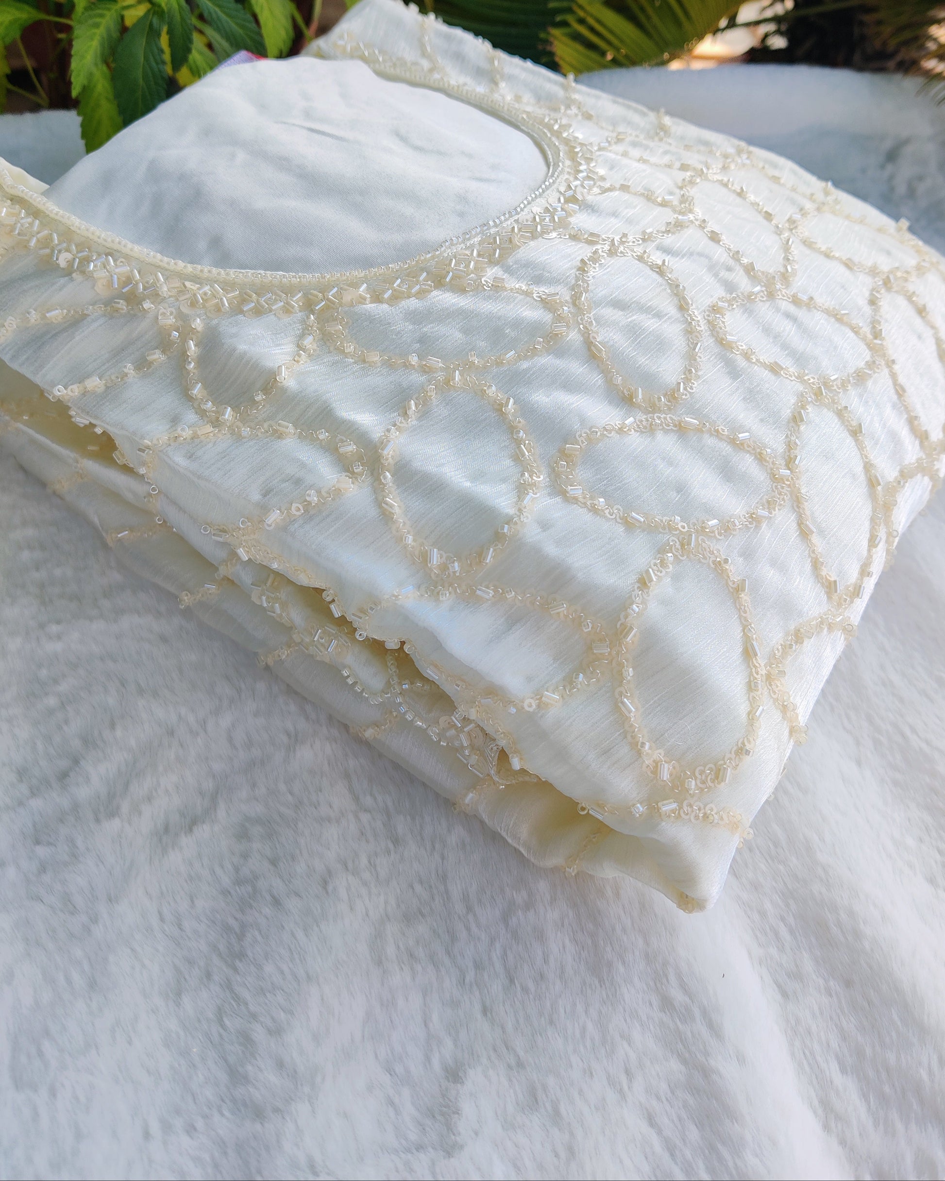 Turn heads with our Cream White Fendi Silk Handwork Suit Set, crafted for women who adore timeless elegance with a luxurious touch.